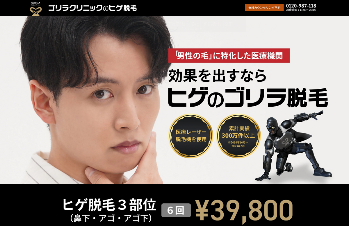 「男性の太く根強いヒゲ」でも満足な効果を期待できるのがゴリラクリニックです。